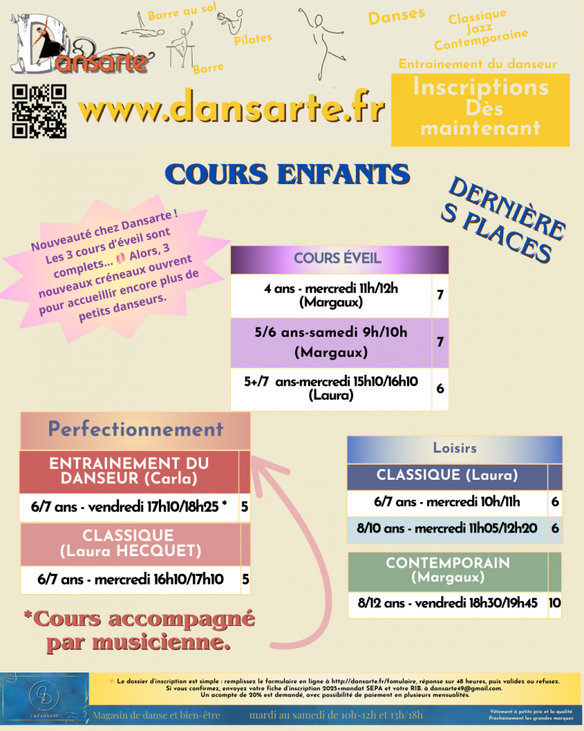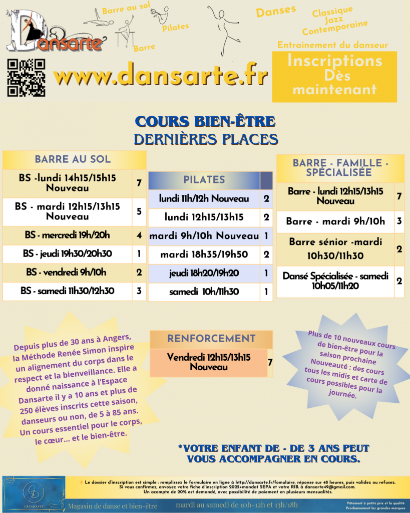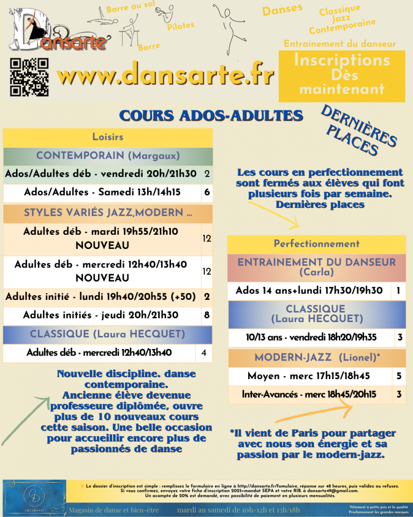 Nos cours où il reste de la place.