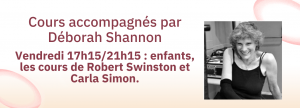 - Les vendredis nos cours sont accompagnés par Déborah Shannon (danse enfant, Robert Swinston et Carla Simon.