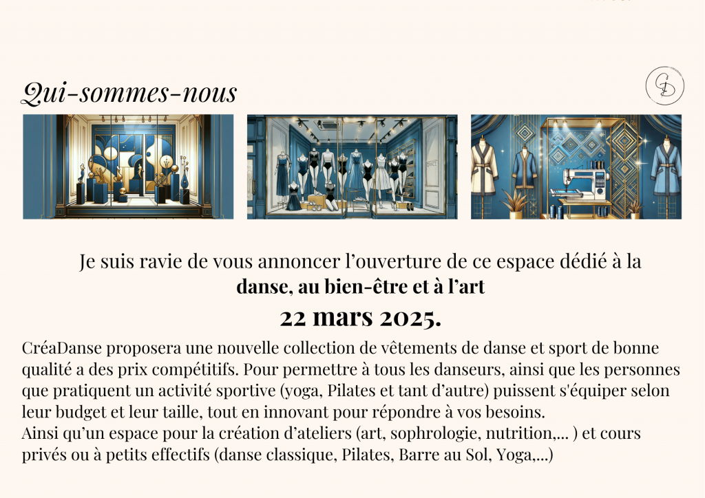 Nous sommes ravis de vous accueillir dans ce nouvel espace dédié à la danse et à l’art.